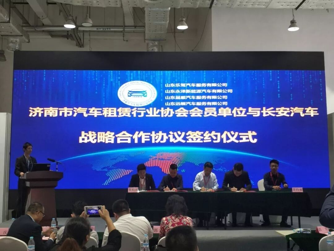 随着郭会长发言的结束,本届论坛进入了最后的活动环节——济南市汽车租赁行业协会会员单位签约仪式。协会成员单位山东乐驾汽车服务有限公司、山东永泽新能源汽车有限公司、山东晟顺汽车服务有限公司、山东远舰汽车服务有限公司分别与吉利、野马、长安、猎豹等新能源优秀车企签订了战略合作协议。至此,中国(山东)网约出行发展论坛圆满落幕。
