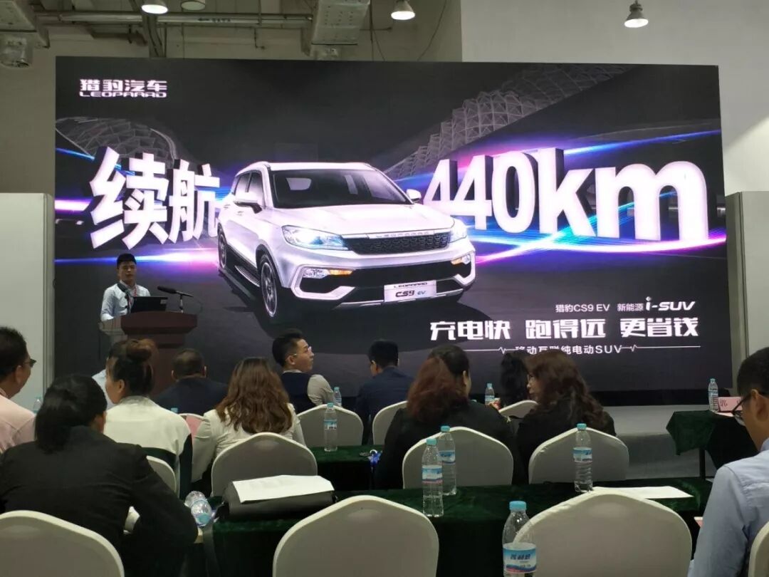 会中,猎豹汽车企业销售代表在现场推介了新上市的新能源汽车猎豹CS9-EV。他展示了猎豹品牌优势以及优惠政策,在场观众表示热烈关注。