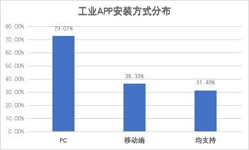 从统计情况来看,已发布的工业APP部署方式差异较大,PC端+移动端是最佳方案。一是PC端仍是工业APP主要安装方式,超过70%的APP支持基于PC端进行部署,这也侧面体现出工业场景的复杂性导致工业APP对承载终端的计算处理能力有一定的要求,而PC端的计算处理能力要高于移动端,因此PC端占比较大。二是移动端安装是工业APP落地的重要方式,支持移动端安装的APP接近总量的40%,移动端便捷性的优势是PC端不可比拟的,但移动端的处理能力或将成为阻碍工业APP安装的重要原因。三是PC端和移动端均支持有望成为工业APP的发展方向,两者均支持的工业APP在此次征集中超过了总量的30%,随着用户的个性化需求的不断提出,工业APP需要较高处理能力部分在PC端进行,而结果查询、数据监控等简单功能将支持移动端查阅,两种方式结合将成为工业APP的发展趋势。