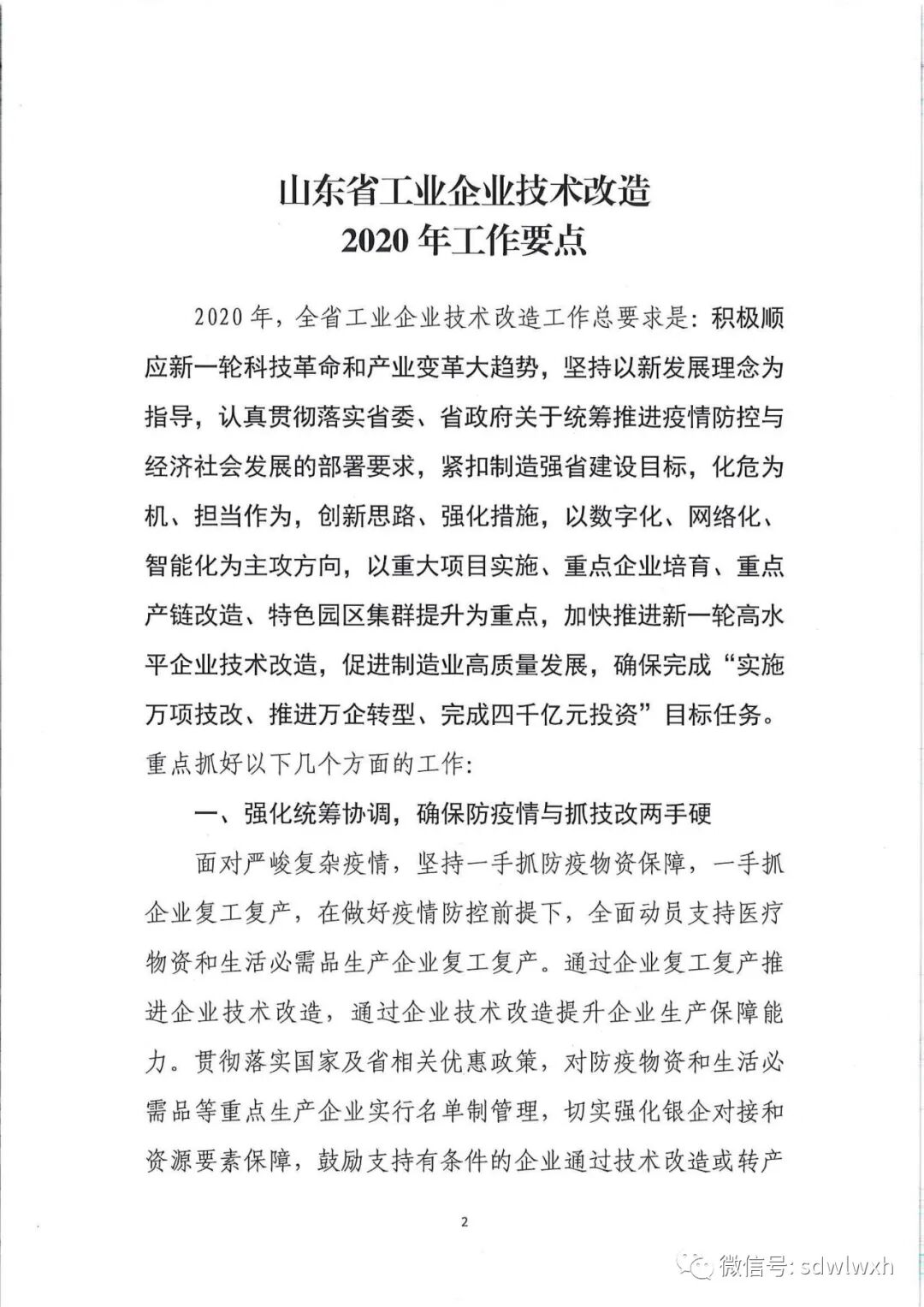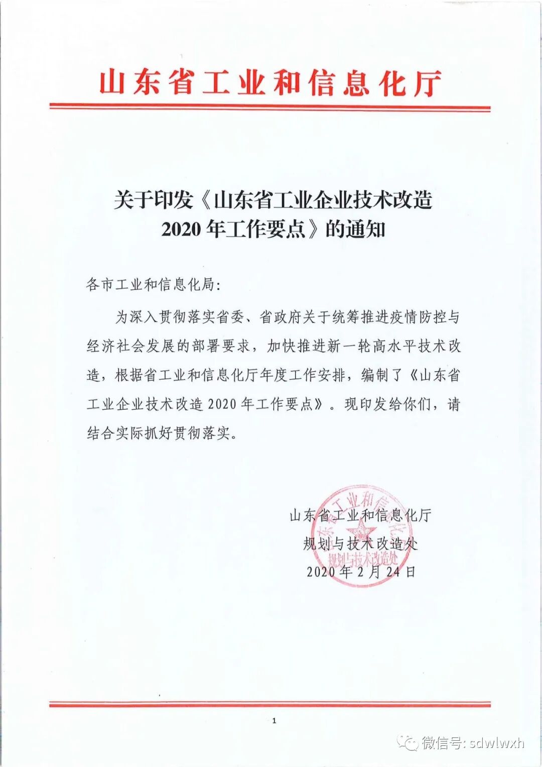 【政策发布】山东省工业和信息化厅关于印发《山东省工业企业技术改造2020年工作要点》的通知