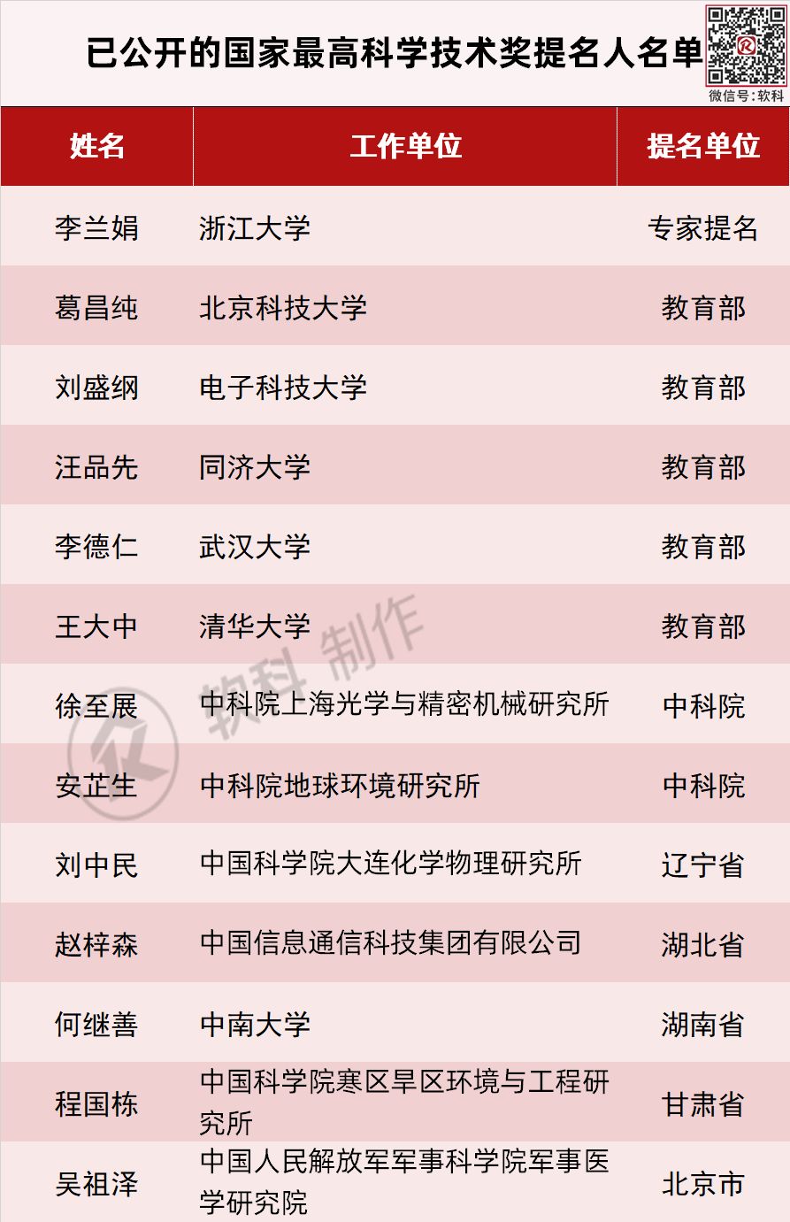 下面看看已公开的国家最高科学技术奖提名人是谁,做了什么卓越贡献。