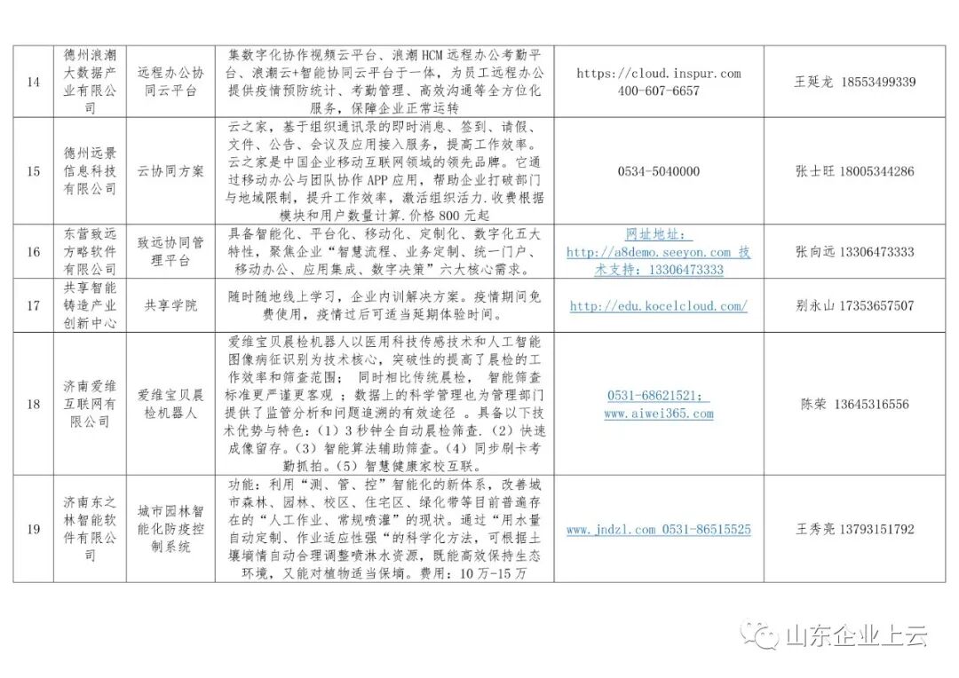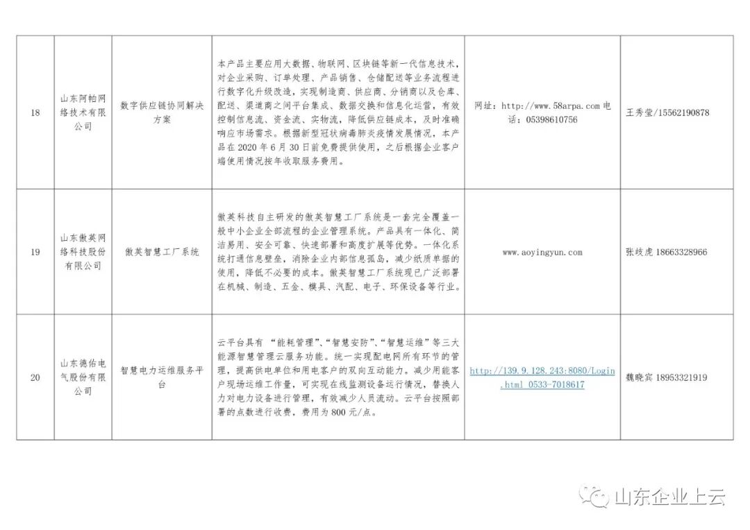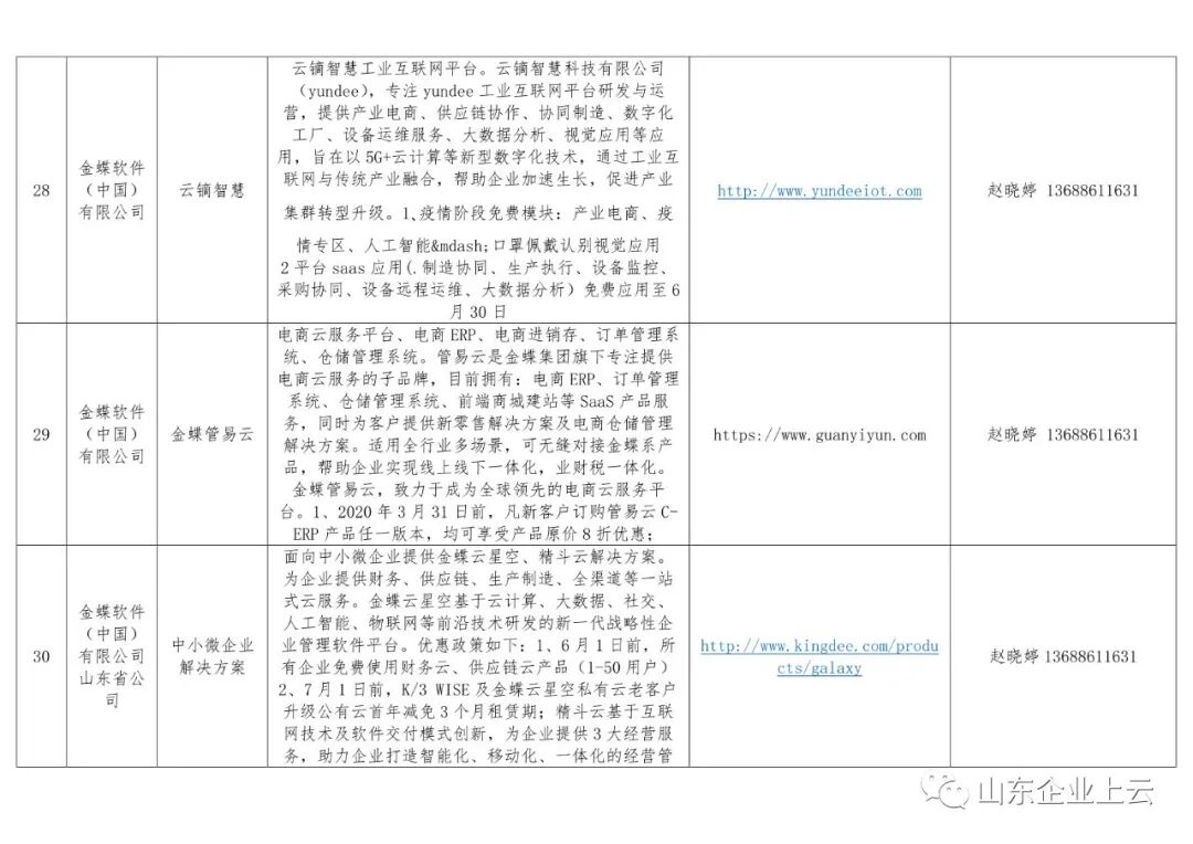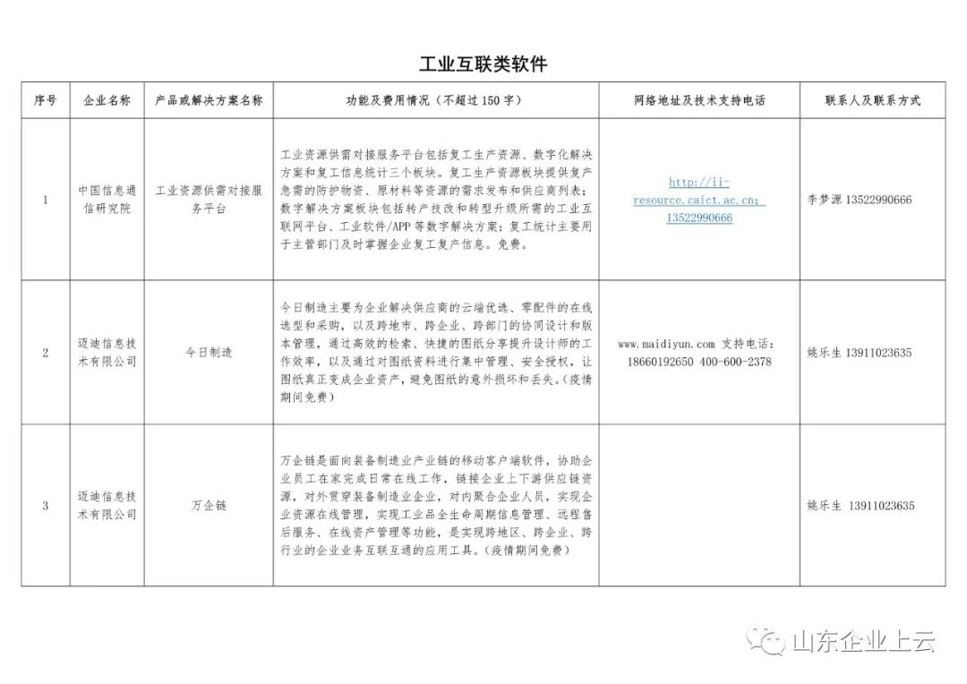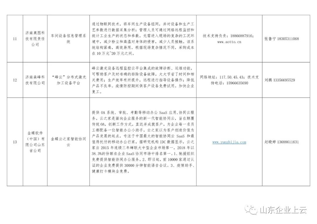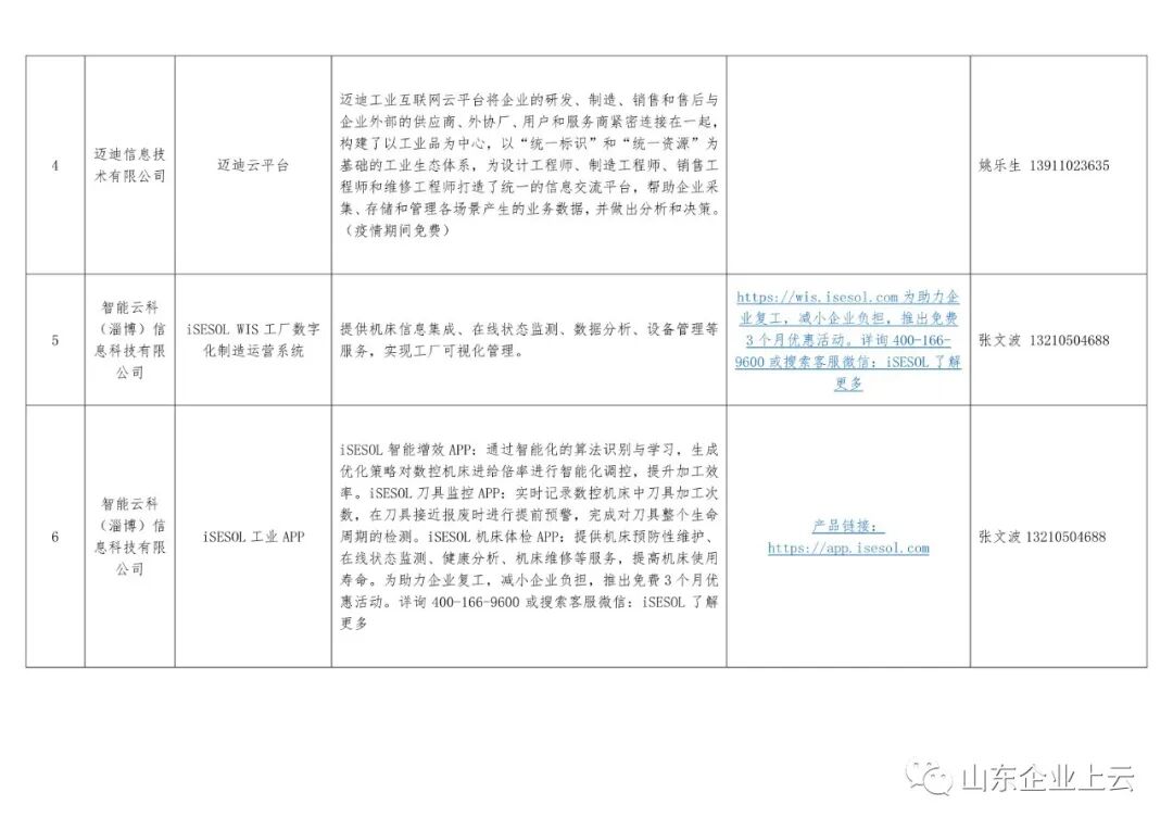 山东省企业上云服务联盟--关于发布工业互联网和云服务商助力企业复工复产产品参考目录(第二批)的通知
