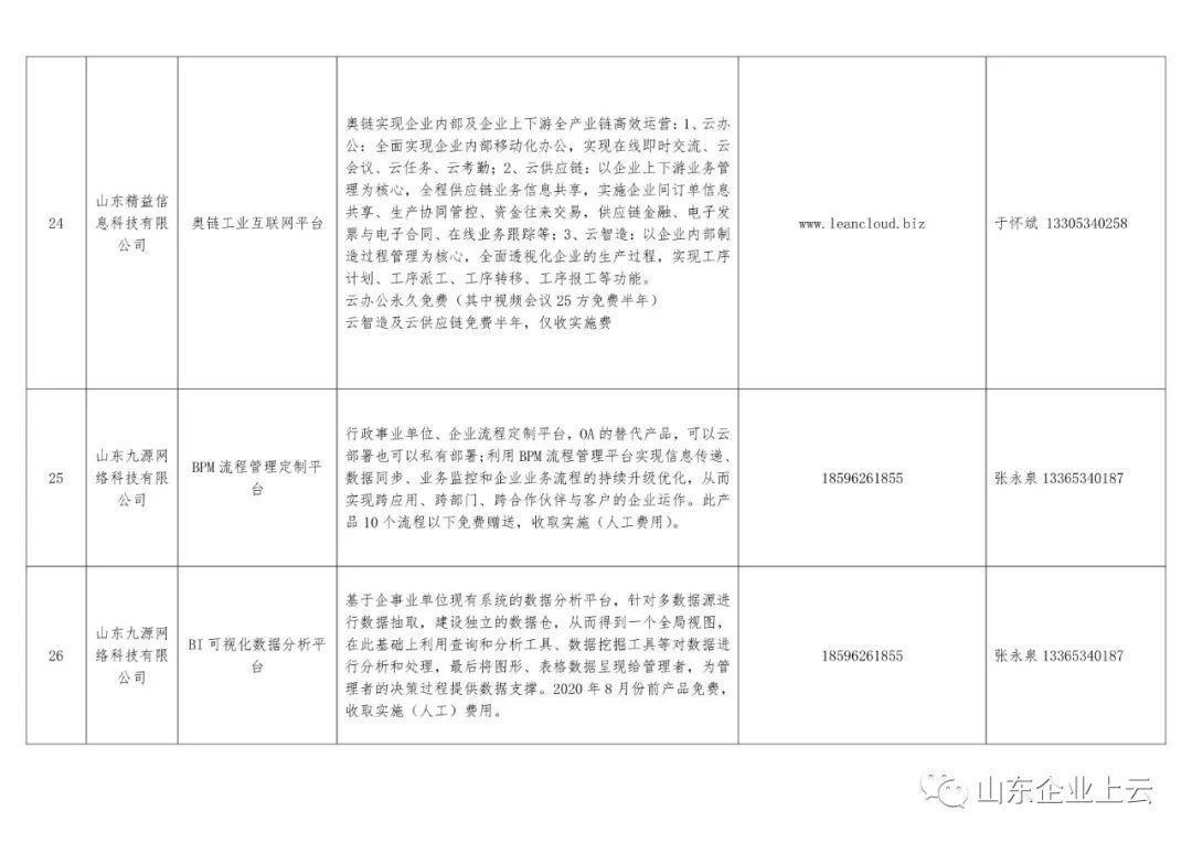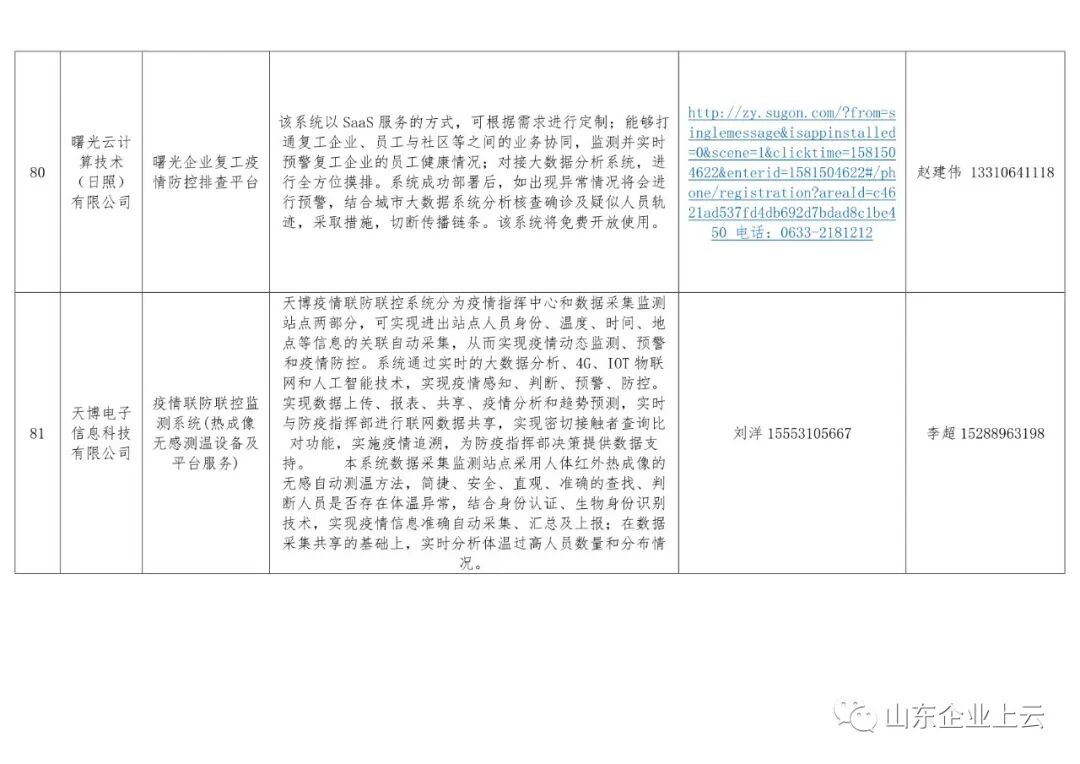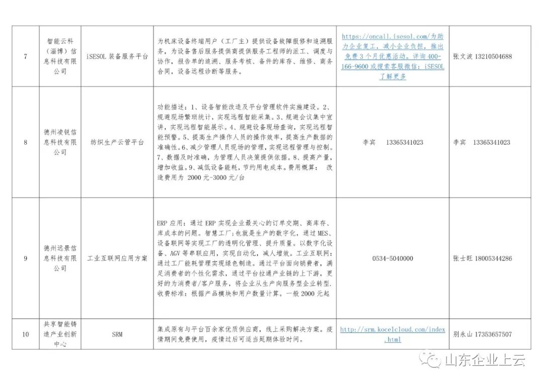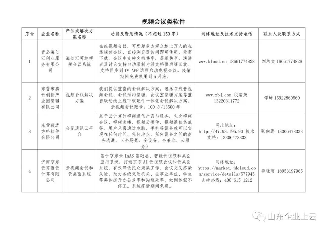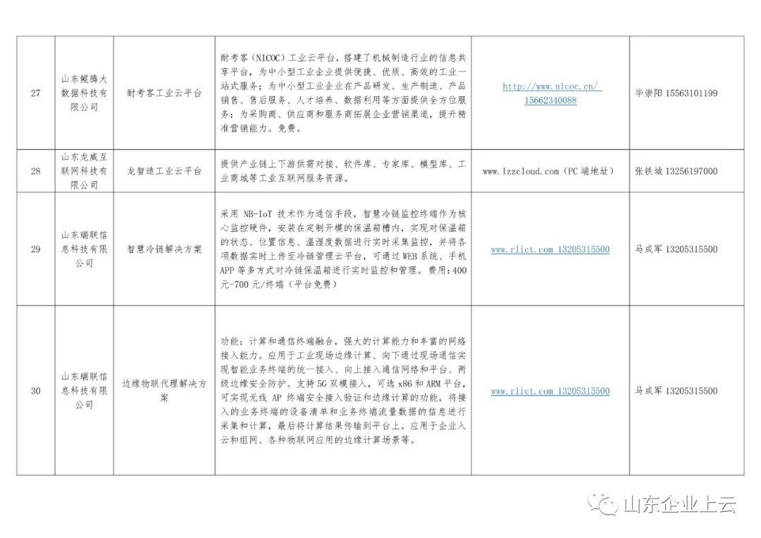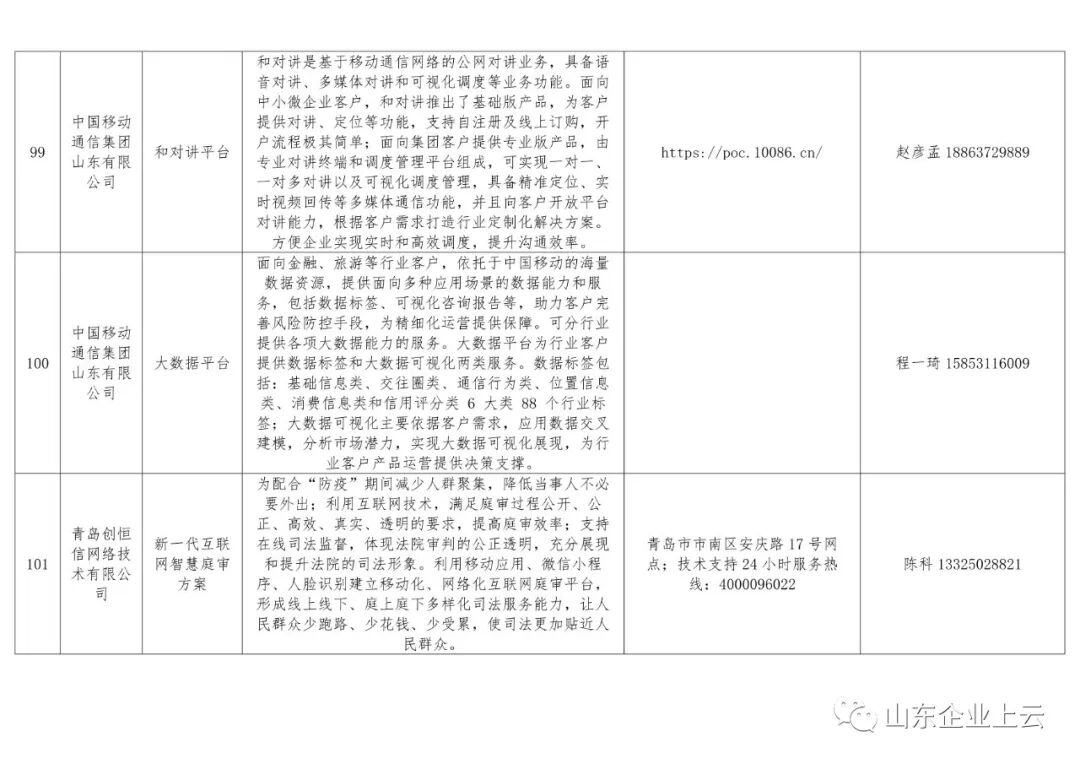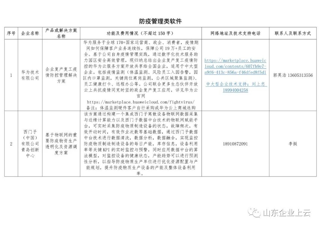 山东省企业上云服务联盟--关于发布工业互联网和云服务商助力企业复工复产产品参考目录(第二批)的通知