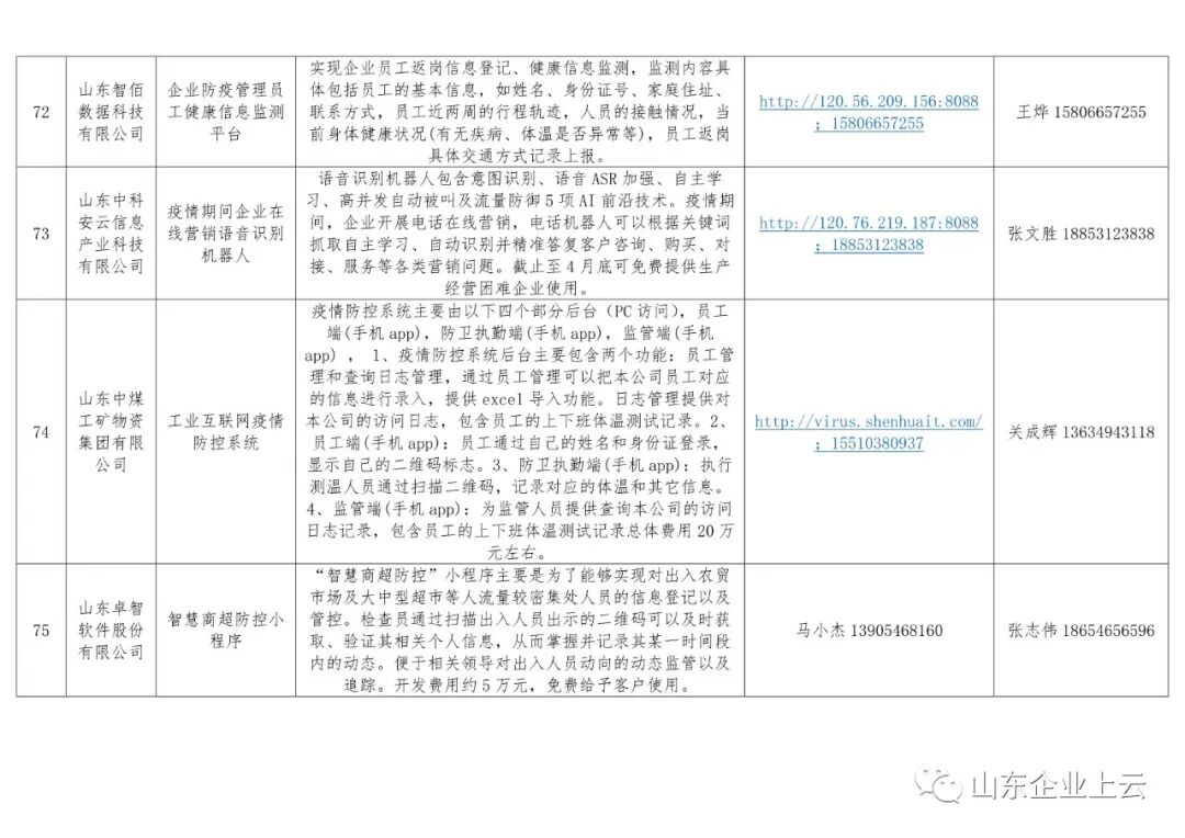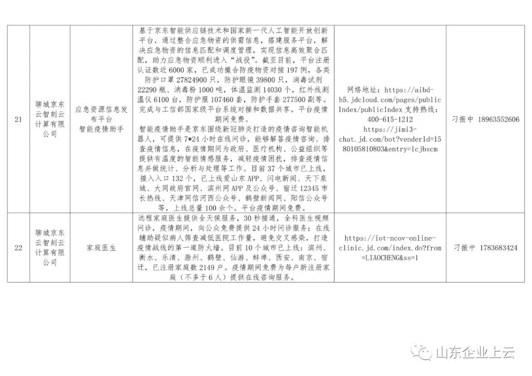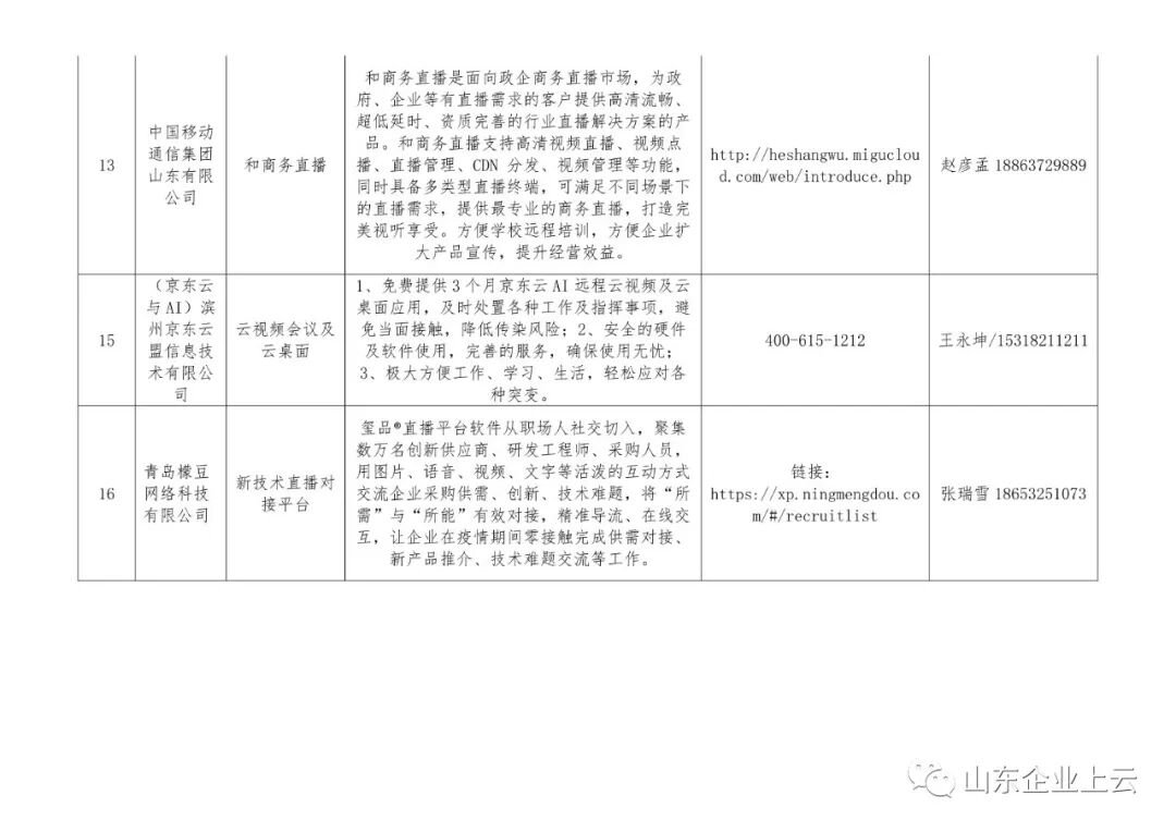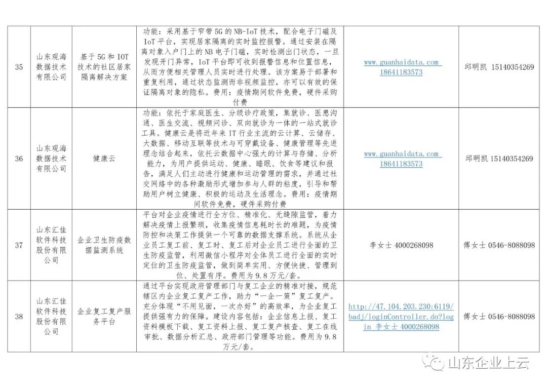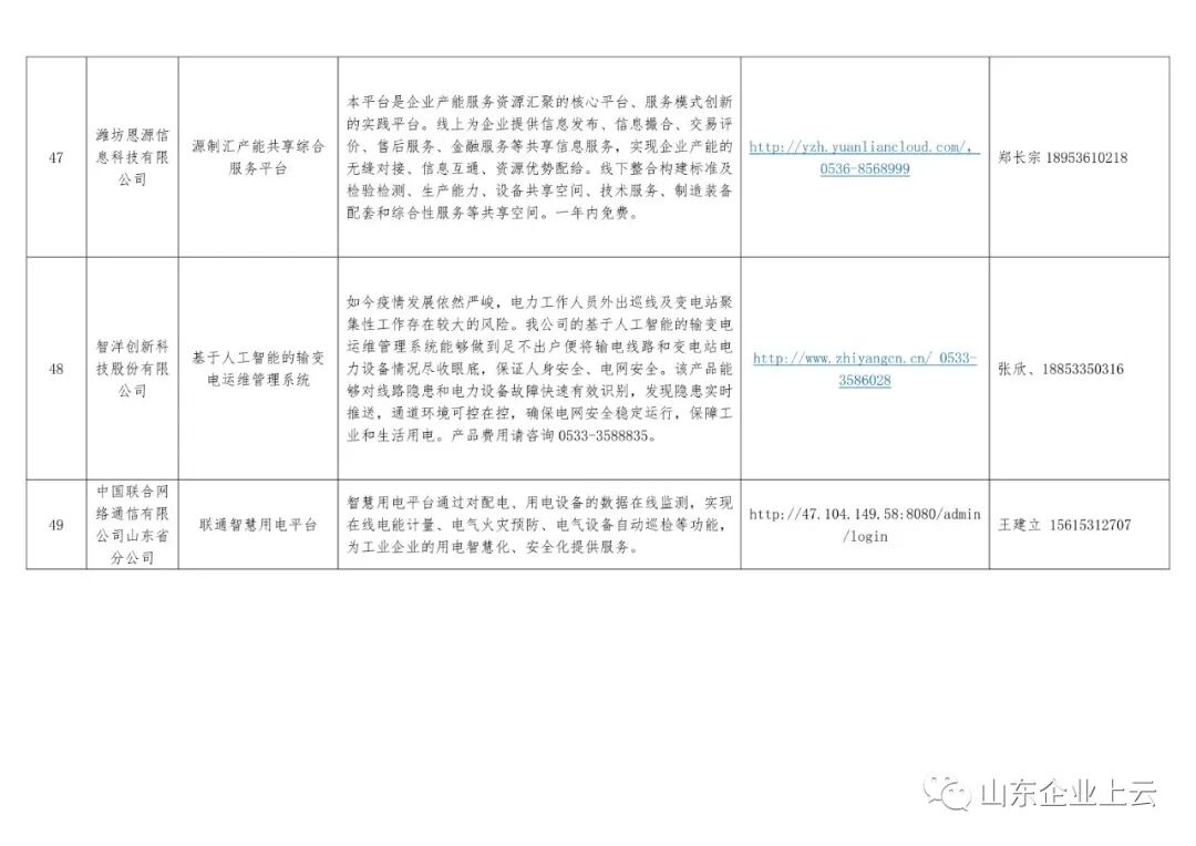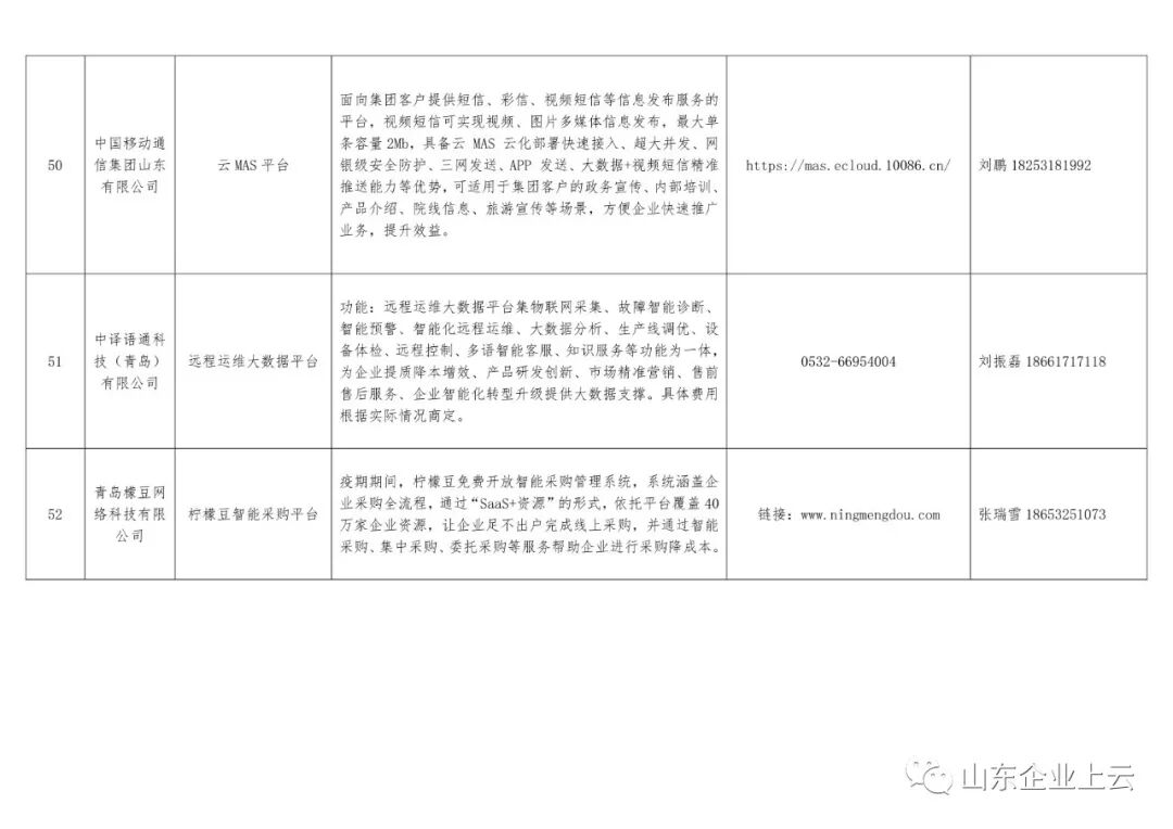 山东省企业上云服务联盟--关于发布工业互联网和云服务商助力企业复工复产产品参考目录(第二批)的通知