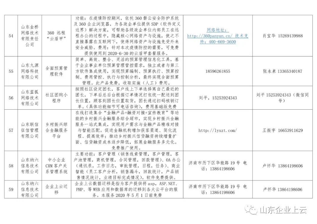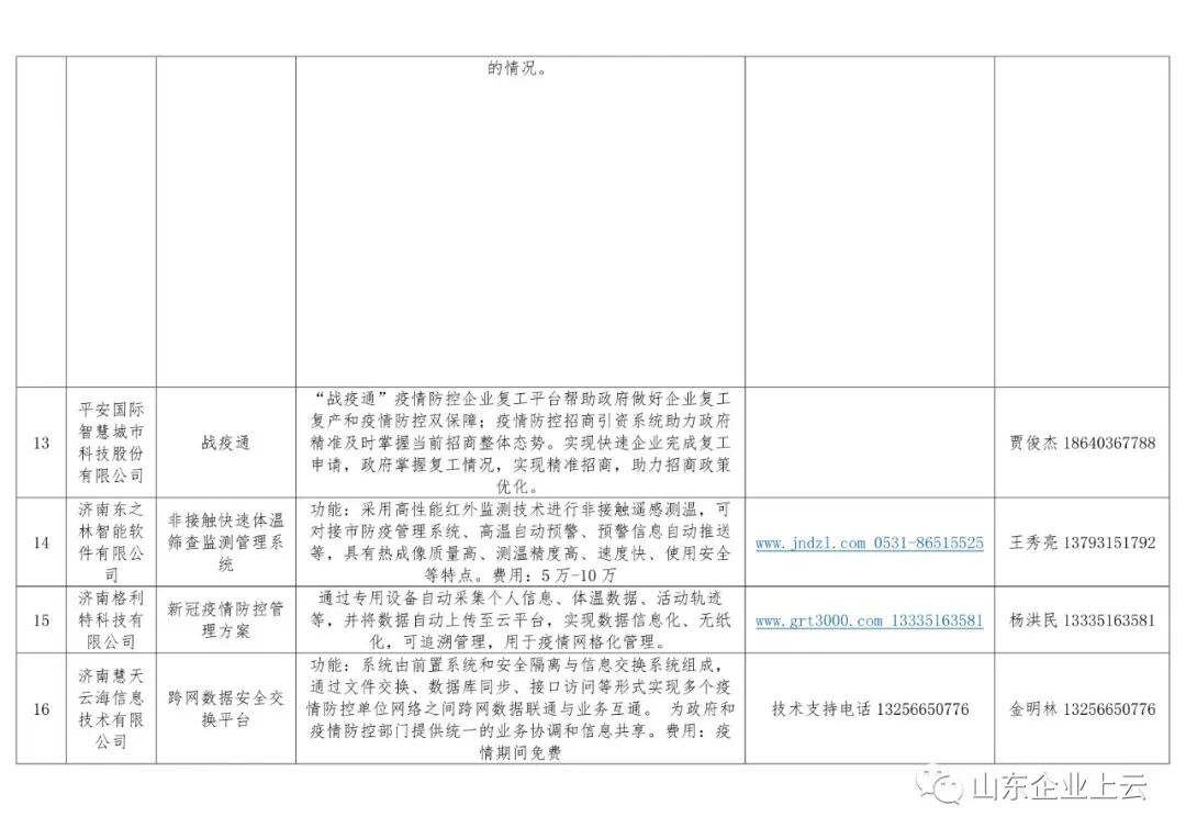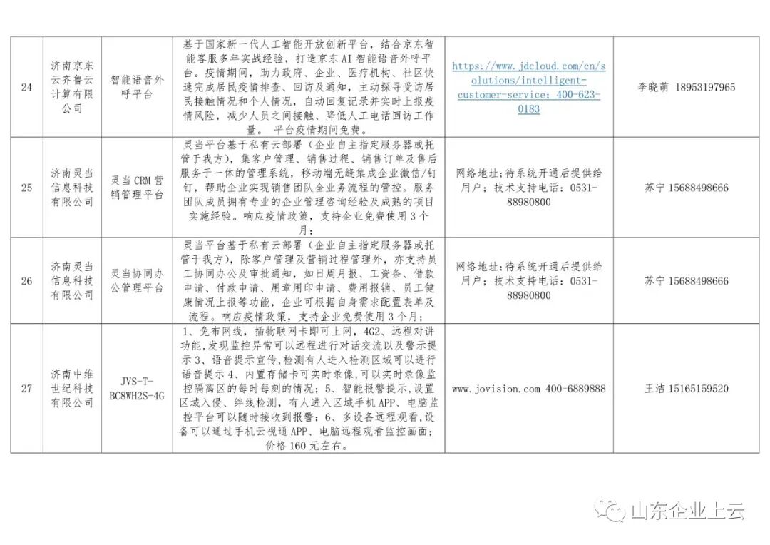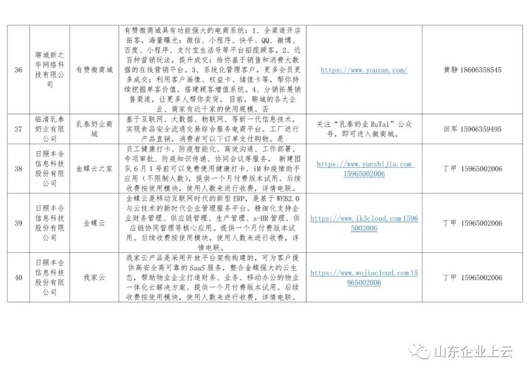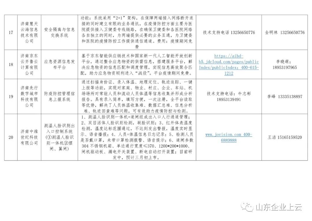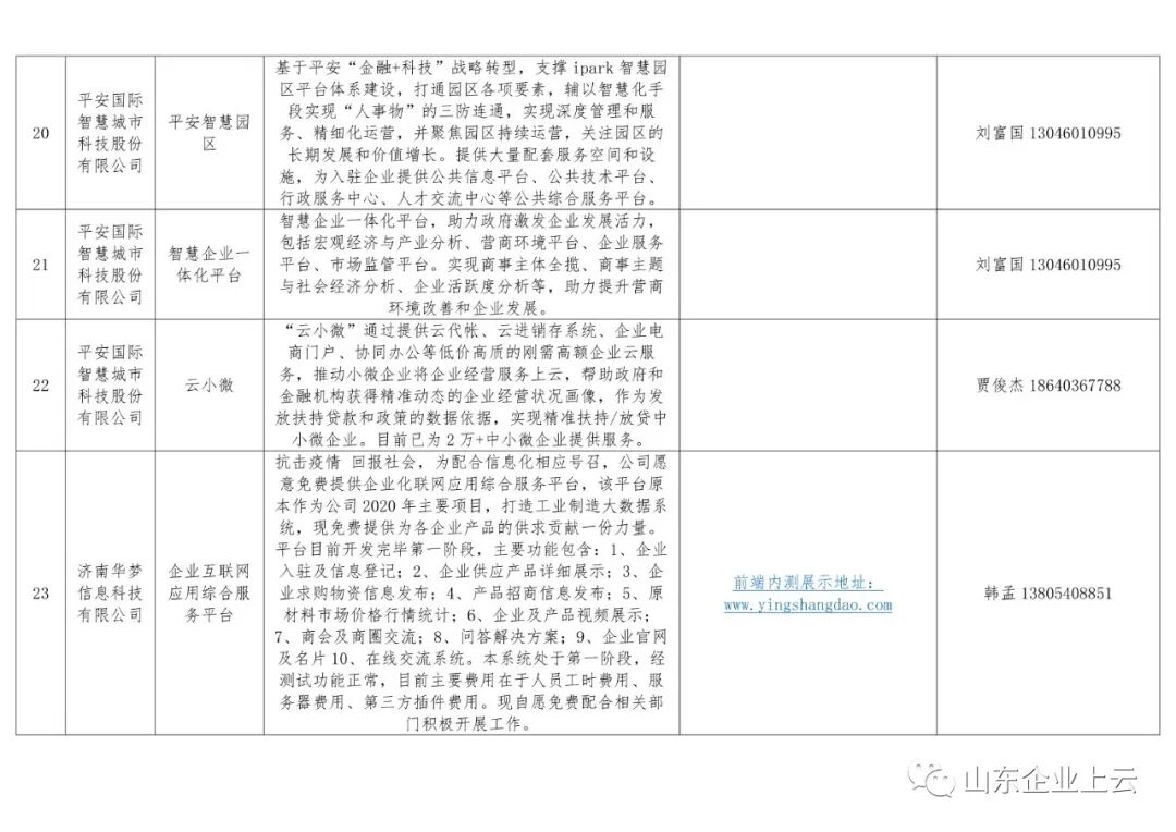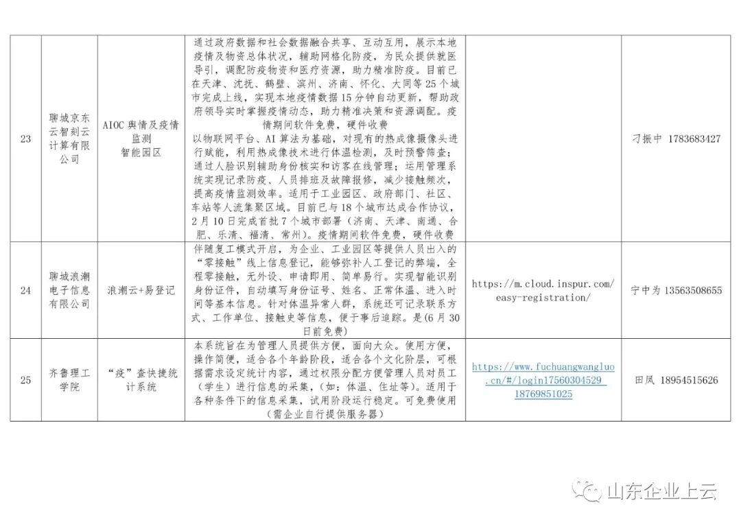 山东省企业上云服务联盟--关于发布工业互联网和云服务商助力企业复工复产产品参考目录(第二批)的通知