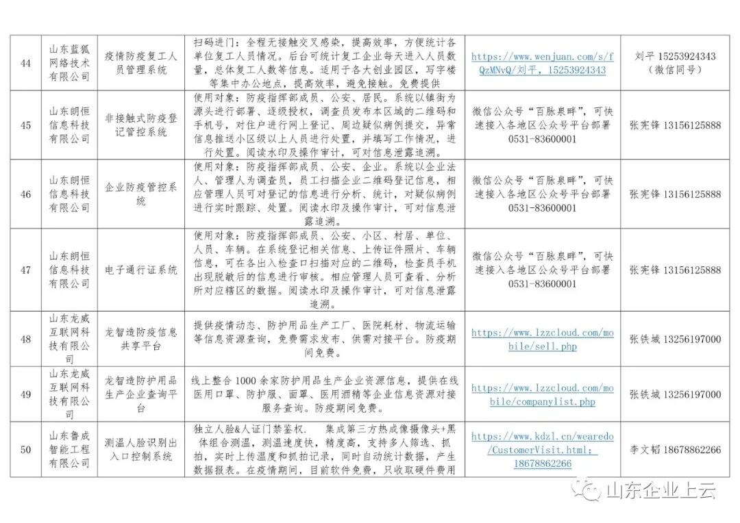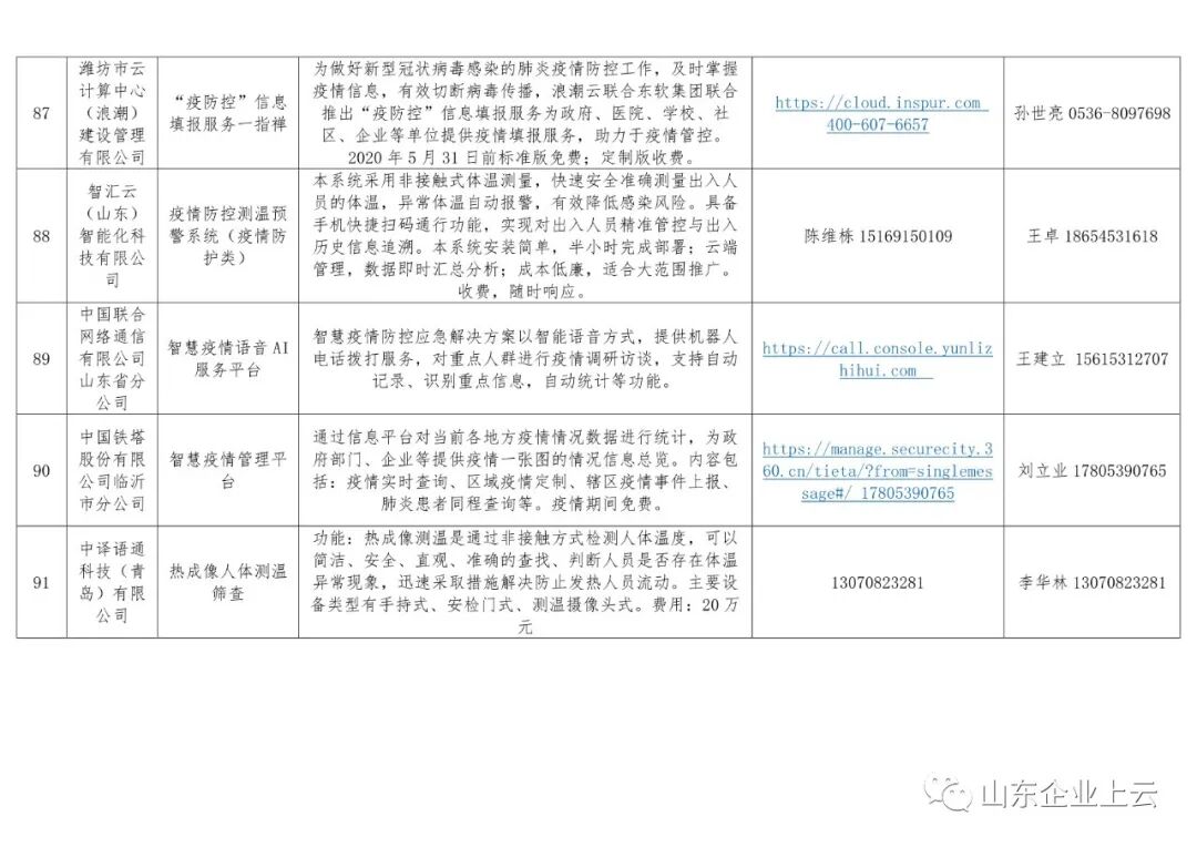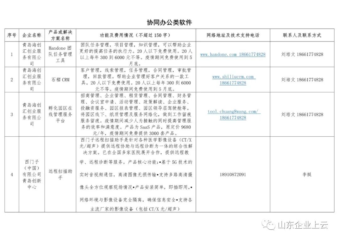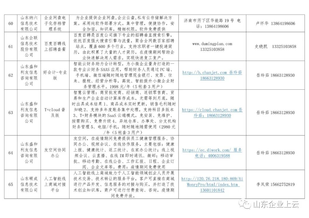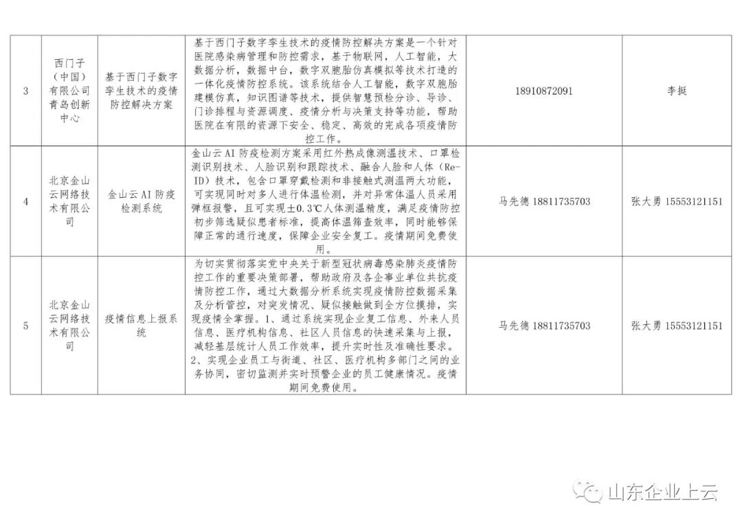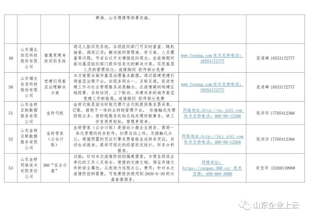 山东省企业上云服务联盟--关于发布工业互联网和云服务商助力企业复工复产产品参考目录(第二批)的通知