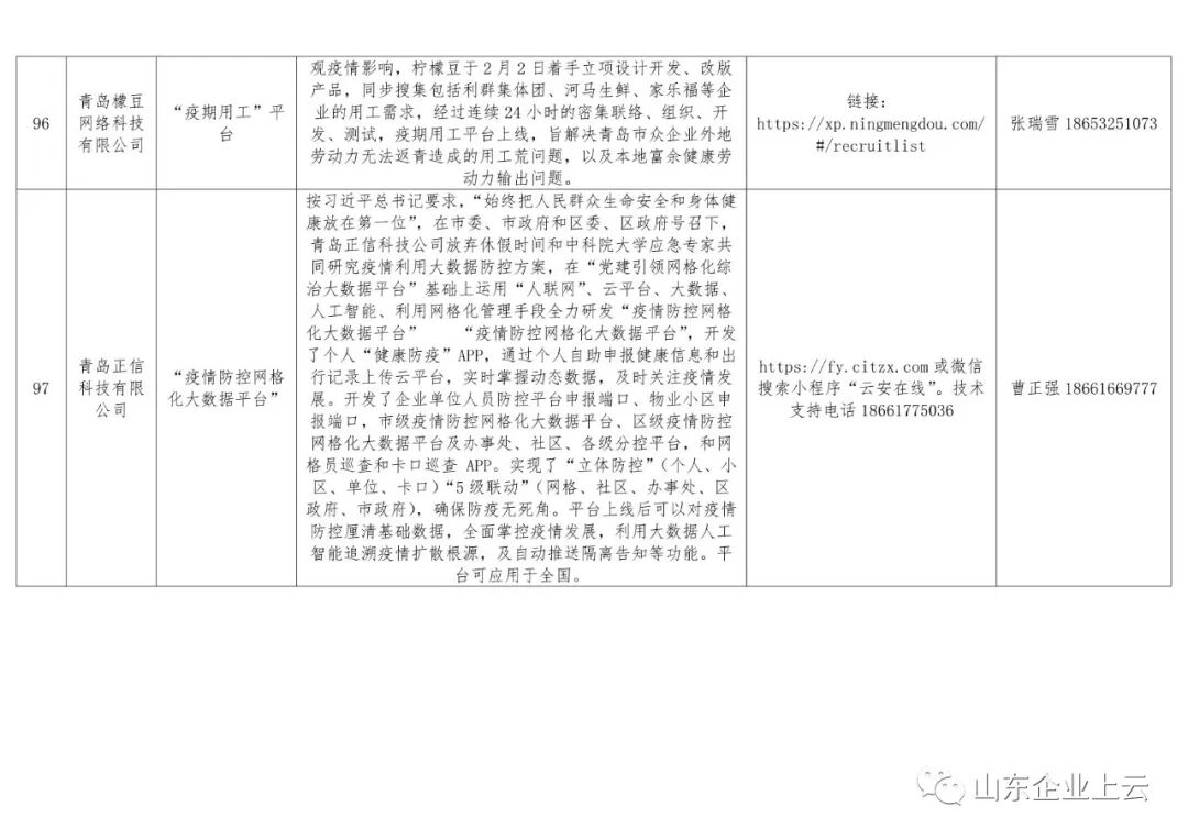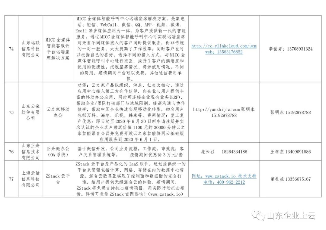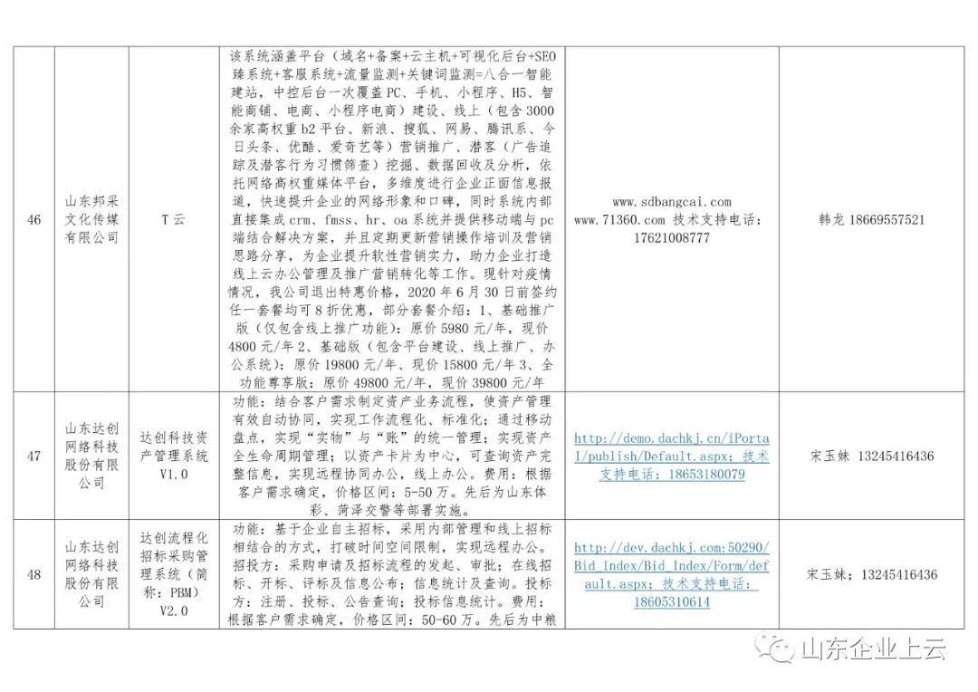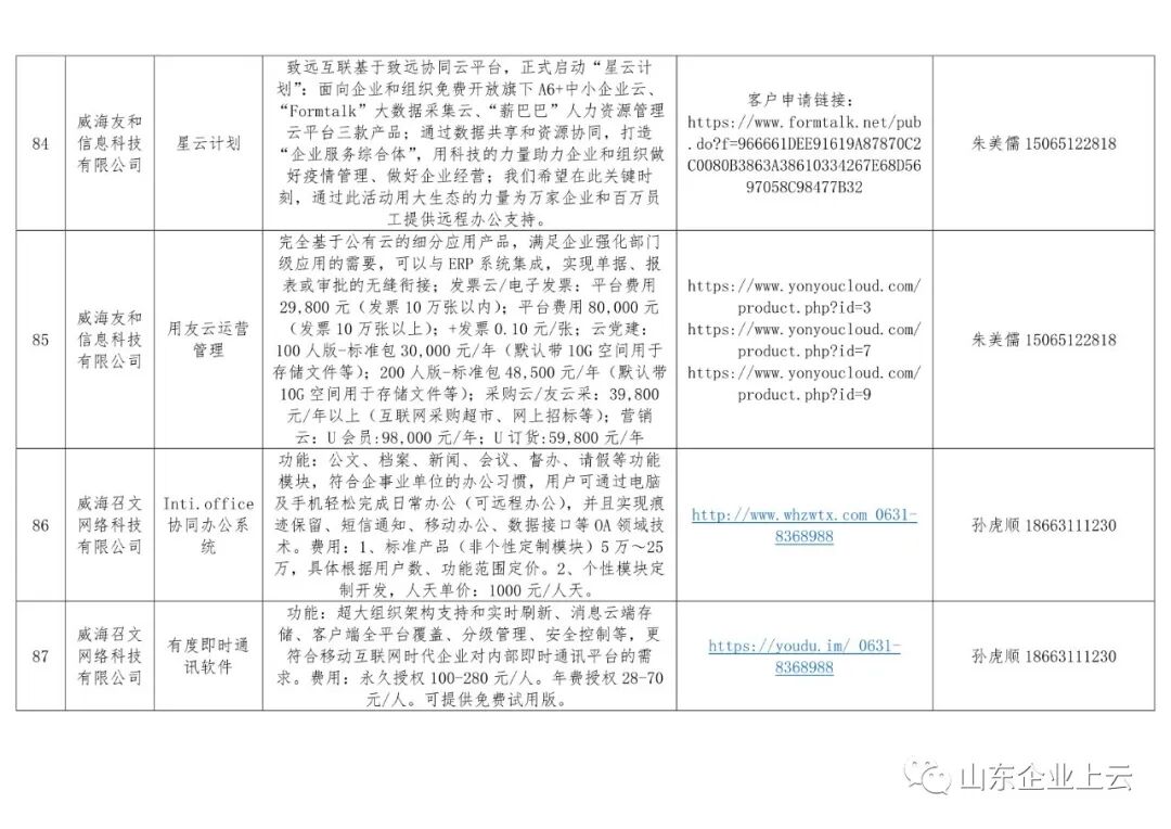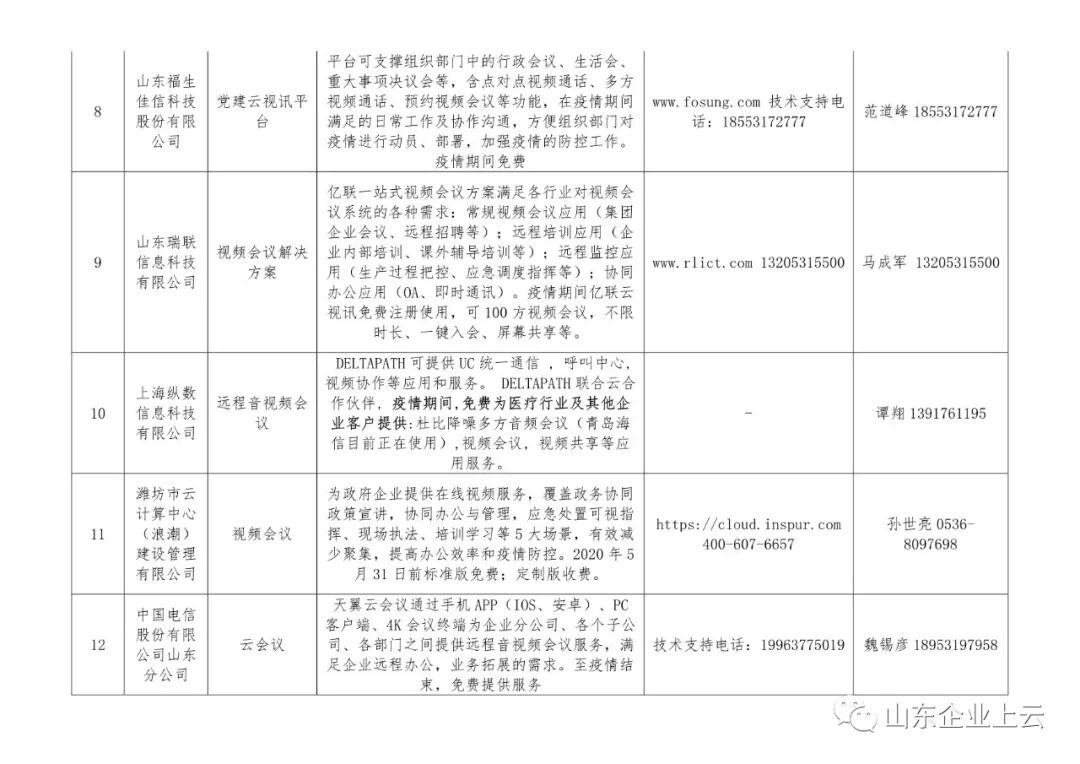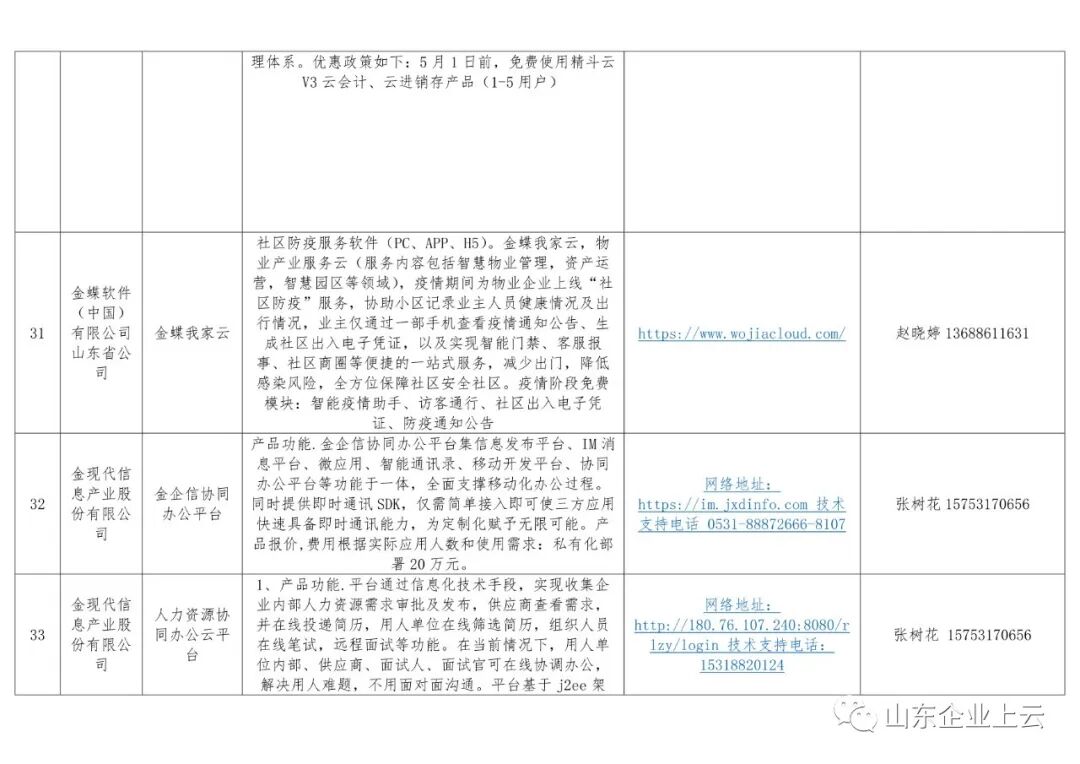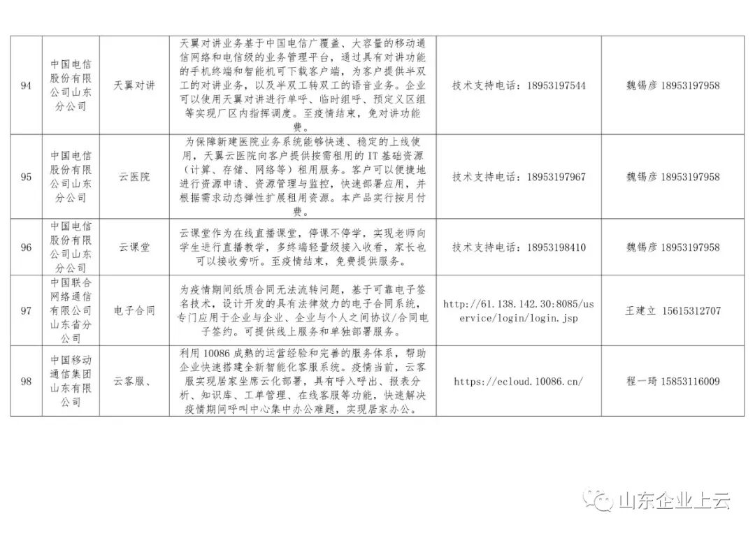山东省企业上云服务联盟--关于发布工业互联网和云服务商助力企业复工复产产品参考目录(第二批)的通知