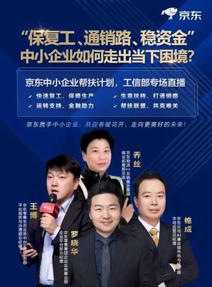 “京东平台服务25万商家,超700万的中小企业用户。我们与中小企业是同呼吸、共命运。针对中小企业复工复产可能遇到的问题,我们细致梳理了京东内部各组织单位的已有能力和资源,并横向整合了上下游的优质企业服务资源,共同推出‘中小企业帮扶计划’,从保复工、通销路、稳资金、企业帮扶联盟四个维度推出近百个具体的帮扶落实举措,累计投入近5亿的资金资源补贴,直击中小企业的生存成长难题。” 京东零售集团企业业务事业部企业平台部总经理罗晓华说道。