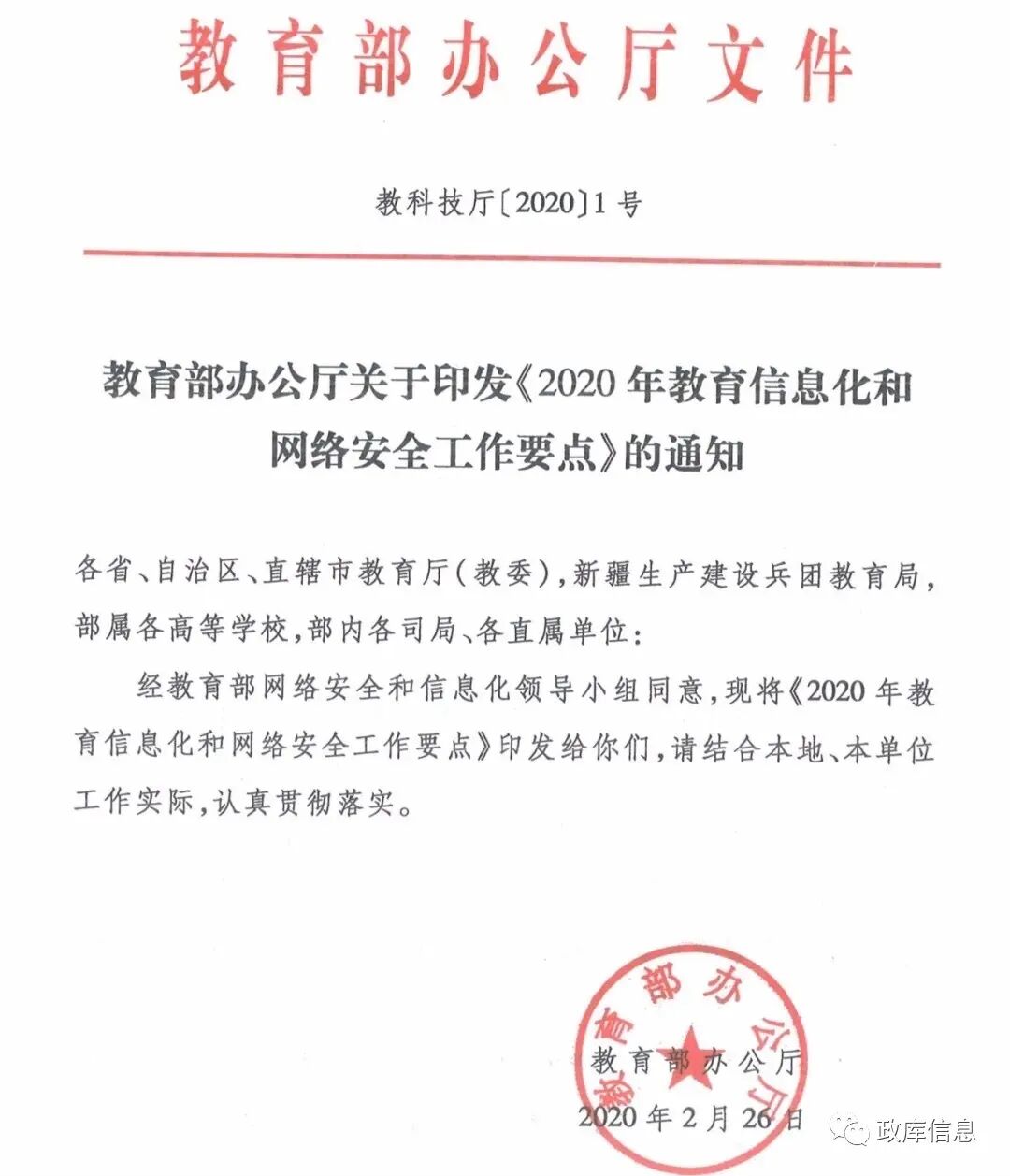 教育部印发《2020年教育信息化和网络安全工作要点》