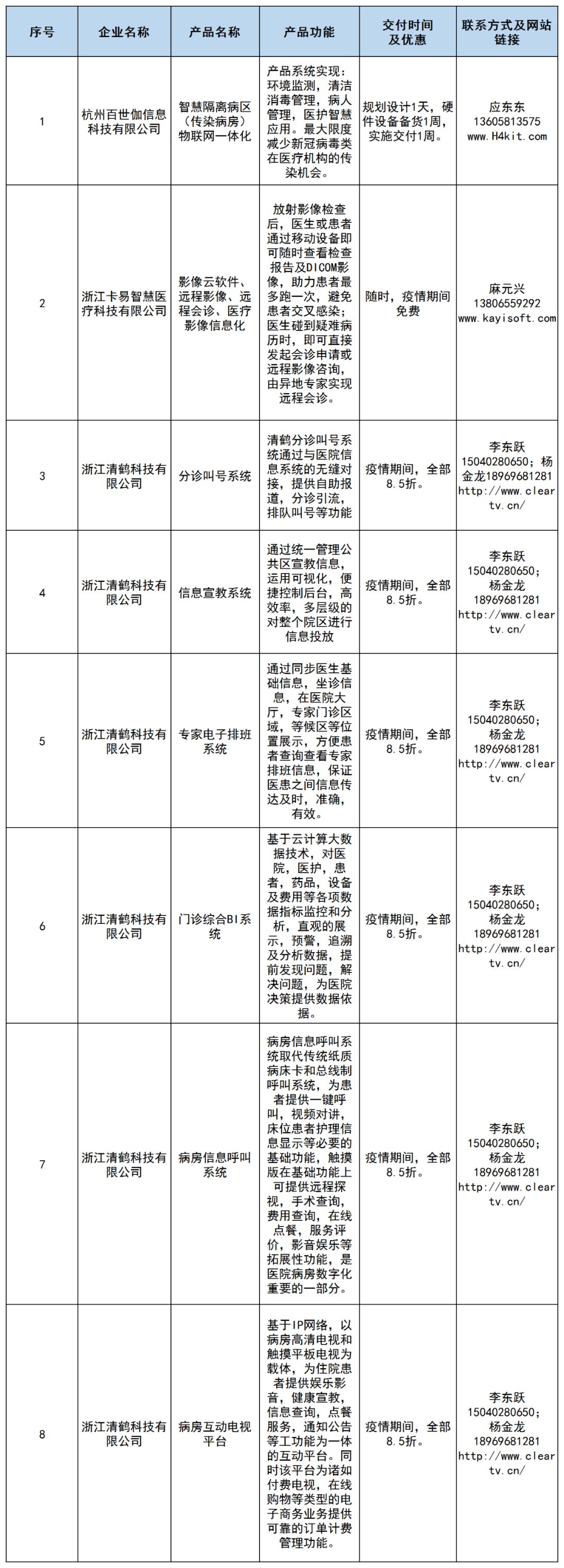 为充分发挥我省数字经济“一号工程”的优势作用,运用云计算、大数据、人工智能、5G等新一代信息技术赋智赋能作用,帮助全省企业尽快复工复产,浙江省经济和信息化厅面向全省互联网+、大数据、云计算、人工智能、5G、红外测温及智能硬件等数字经济类企业广泛征集疫情防控、远程办公、经营管理、智慧医疗、网络教育以及其他有助力企业复工复产的产品和服务信息。