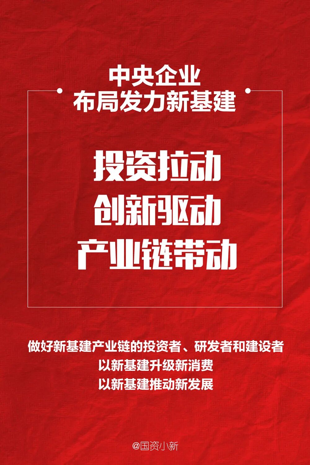 3月4日,中央政治局常务委员会提出“加快推进国家规划已明确的重大工程和基础设施建设,加快5G网络、数据中心等新型基础设施建设进度”,“新基建”成为广受社会关注的热词。产业界、资本市场表现出强烈的兴趣,期待“新基建”成为有效带动经济发展的龙头,助力中国经济走出疫情冲击,迎来更广阔的发展空间。那么,“新基建”新在哪里?刚刚经历全力支援抗疫、率先复工复产的中央企业,作为中国经济“顶梁柱”的中央企业,如何在“新基建”中担当作为?中央企业已经迅速行动,早着手、早规划、早投入、早研发、早建设,发挥产业链主力军优势,用投资驱动和硬核科技领跑“新基建”,努力做好“新基建”产业链的投资者、研发者和建设者,以“新基建”升级“新消费”,形成增长新动力,推动实现高质量发展。