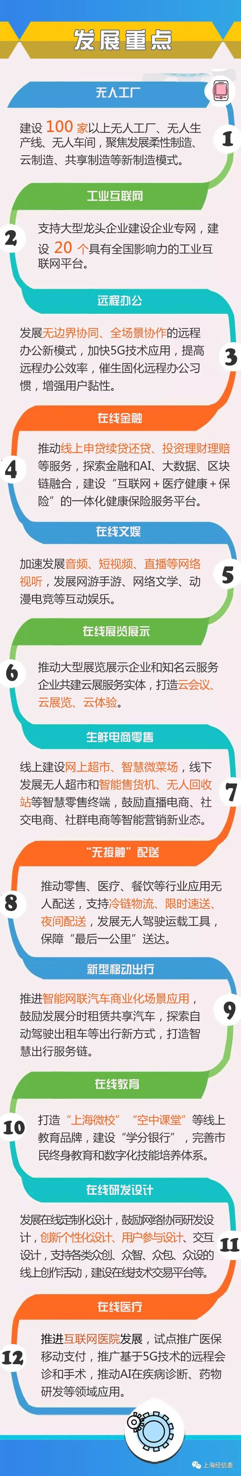 今天(13日)举行的市疫情防控工作领导小组新闻发布会上,市经信委发布《上海市促进在线新经济发展行动方案(2020-2022年)》。方案明确:集聚“100+”创新型企业、推出“100+”应用场景、打造“100+”品牌产品、突破“100+”关键技术等行动目标;聚焦无人工厂、工业互联网、在线医疗等12大发展重点;实施智能交互核心技术攻关行动、新型基础设施支撑行动等6项专项行动;落实加大统筹协调、包容审慎监管、强化公共服务等5条保障措施。详情↓