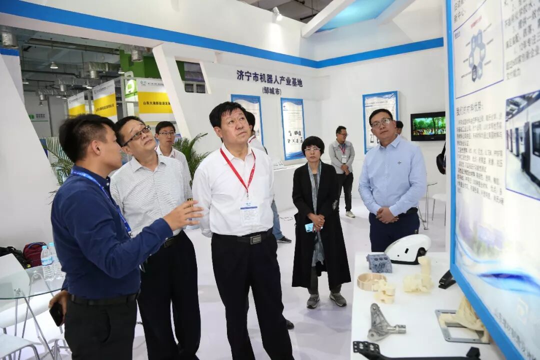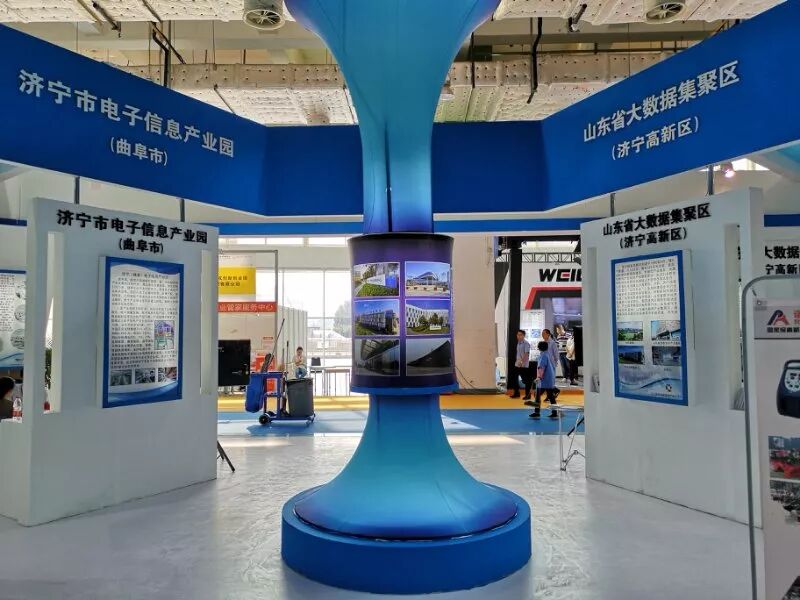 经积极争取,今年济宁展区面积扩展到200余平方米,设计凸显现代性、地域性的同时,融入声光电科技创意要素,实现了美观大气和信息技术元素的完美结合。内容上重点围绕“山东省大数据集聚区——济宁高新区”“省级运河软件园——任城区”“济宁电子信息产业园——曲阜市”“济宁机器人产业基地——邹城市”四大主题,从软件开发、智能制造、物联网等领域,以不同形式突出推介山东省唯一的省信息技术产业基地品牌,以及我市信息产业的规划布局、发展目标、重点项目以及取得的新进展、新亮点、新成果等,彰显了我市争做全省新旧动能转换先锋市的决心。济宁展厅造型设计独特、地域特色鲜明,呈现出济宁信息产业蓬勃发展的态势,吸引了来自各地参展商的关注,人气爆棚。28日,副市长张胜明带队莅临指导,检查了济宁展厅的布展情况,详细听取了市经信委关于济宁新一代信息技术产业发展情况的汇报,并与参展企业深入交流,认真查看参展产品。对布展参展工作及近年来信息产业发展取得的新成绩给予充分肯定。