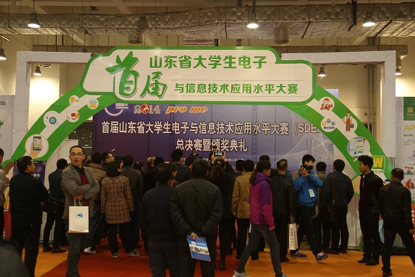 “首届山东省大学生电子与信息技术应用水平大赛”活动现场,16个院校的80支参赛队领导及分管校长到会参加。